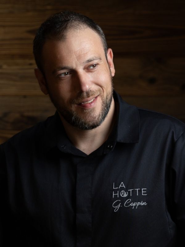 Grégory Coppin, chef du restaurant la Hotte, cuisine depuis ses 17 ans entre Drôme et Ardèche. Fier de son terroir et fort de ses expériences, il maîtrise une large palette de créations culinaires dont les sauces savamment travaillées.